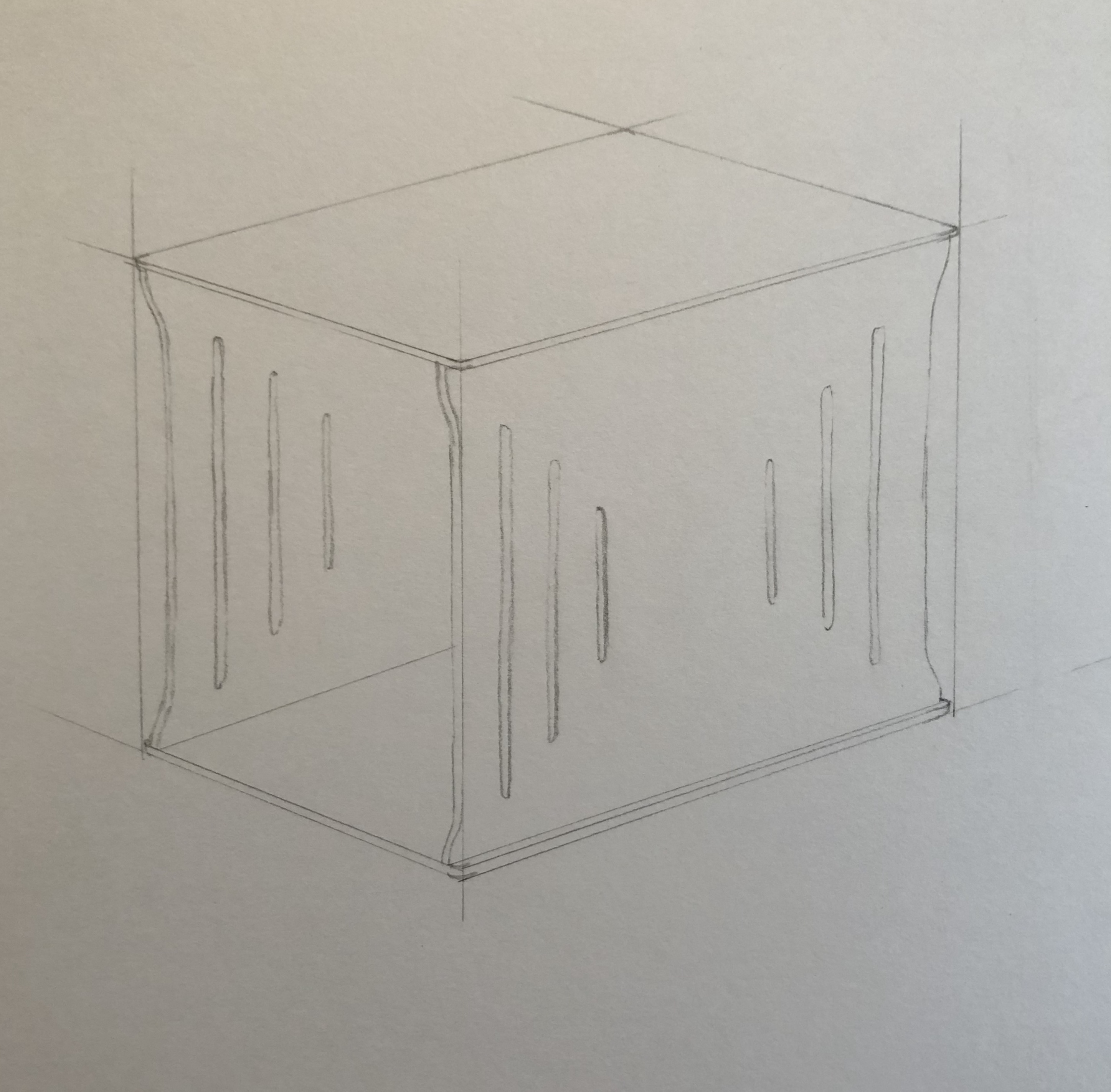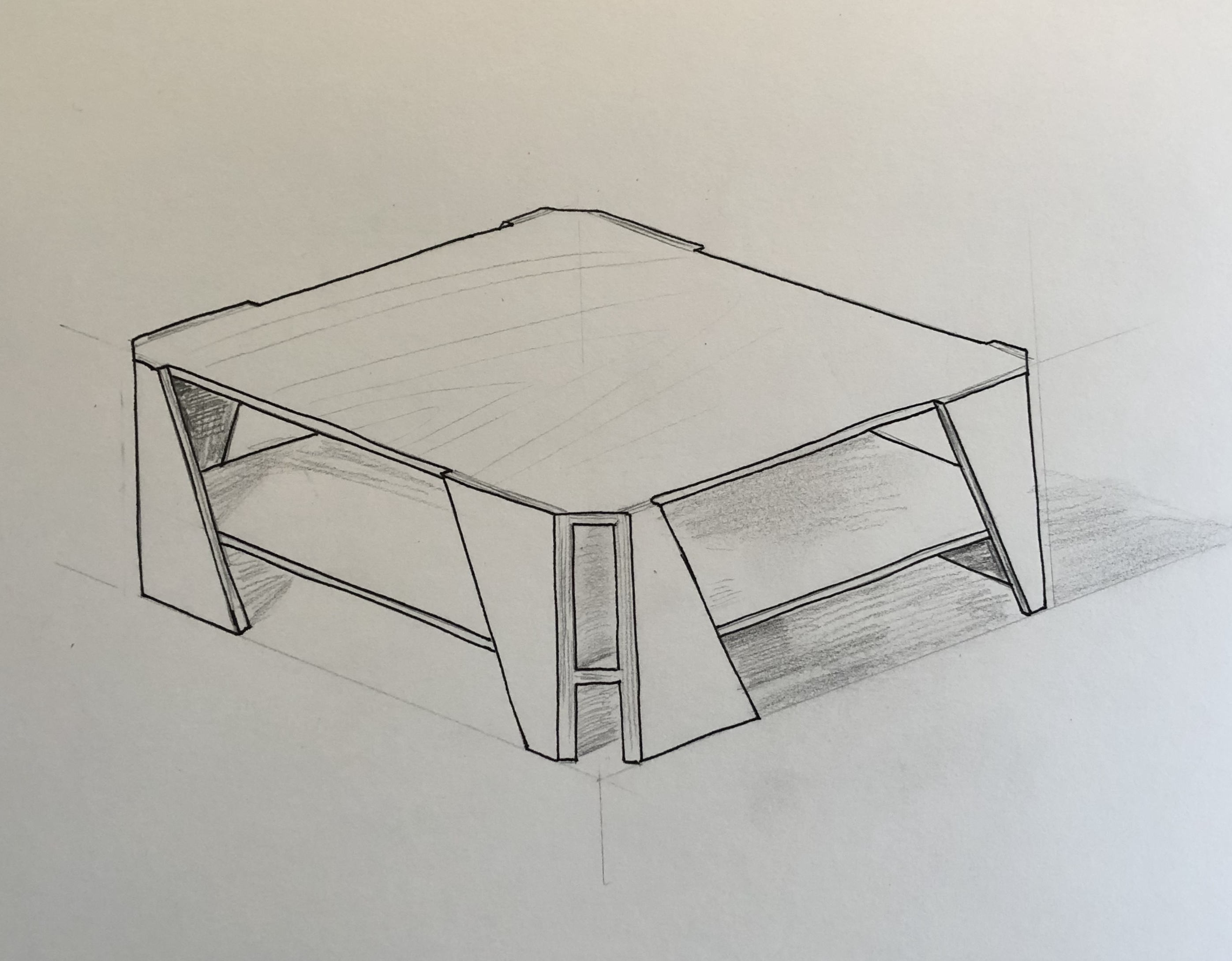 Sketch and model of wall-mounted side table
