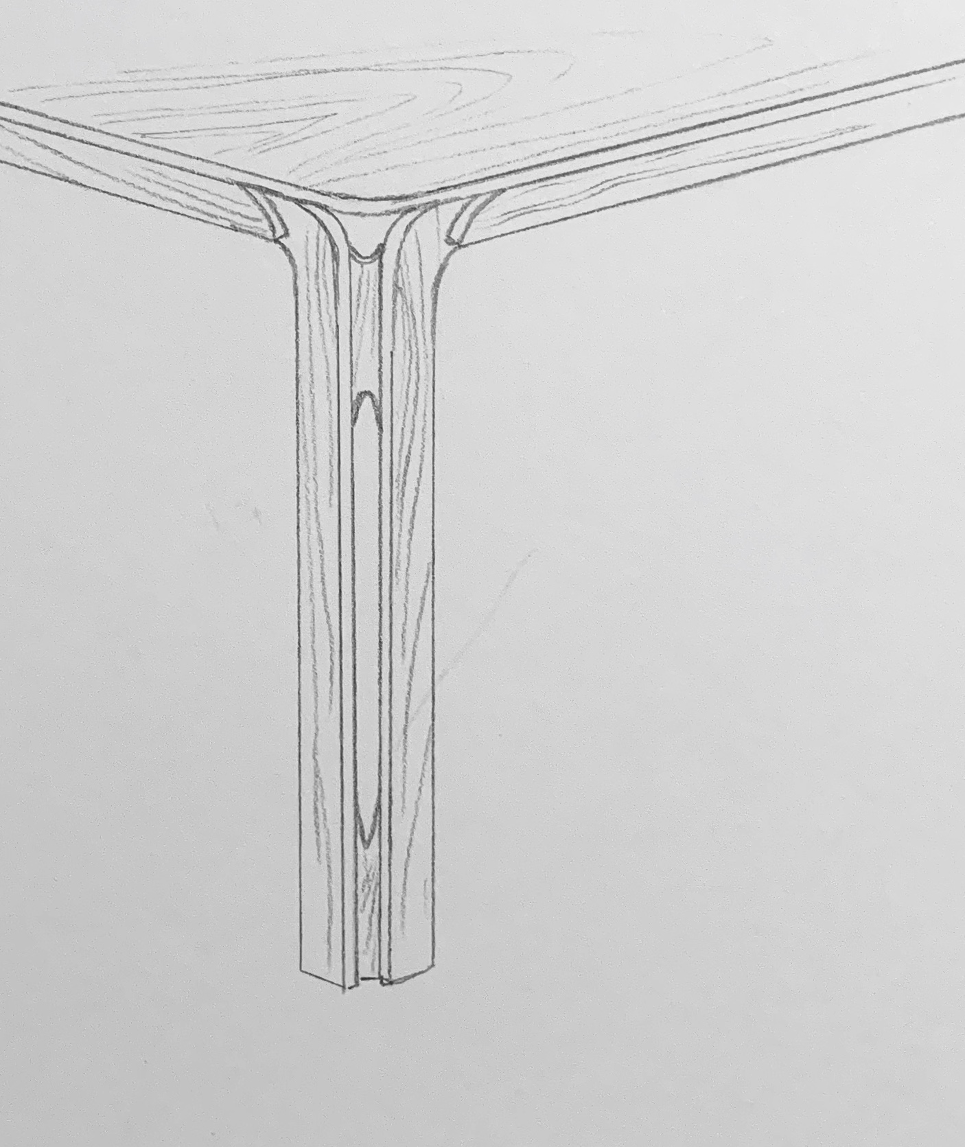 Models and sketches of corner leg details of square table